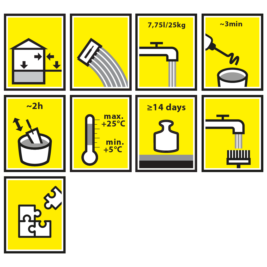 - Virsmas jāgruntē ar grunti SAKRET UG (atšķaidītu attiecībā 1:3). Īpaši gludas betona virsmas jāgruntē ar grunti SAKRET QG