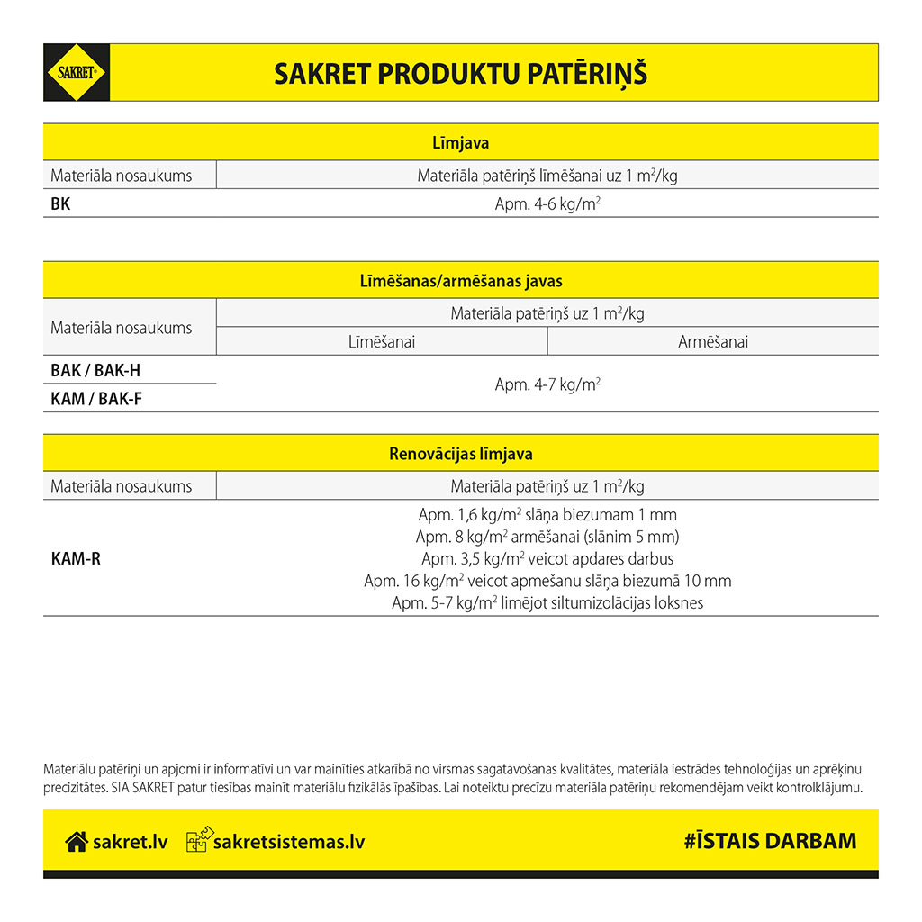 Ieskaties, kāds ir SAKRET līmēšanas / armēšanas javas un līmes patēriņš!