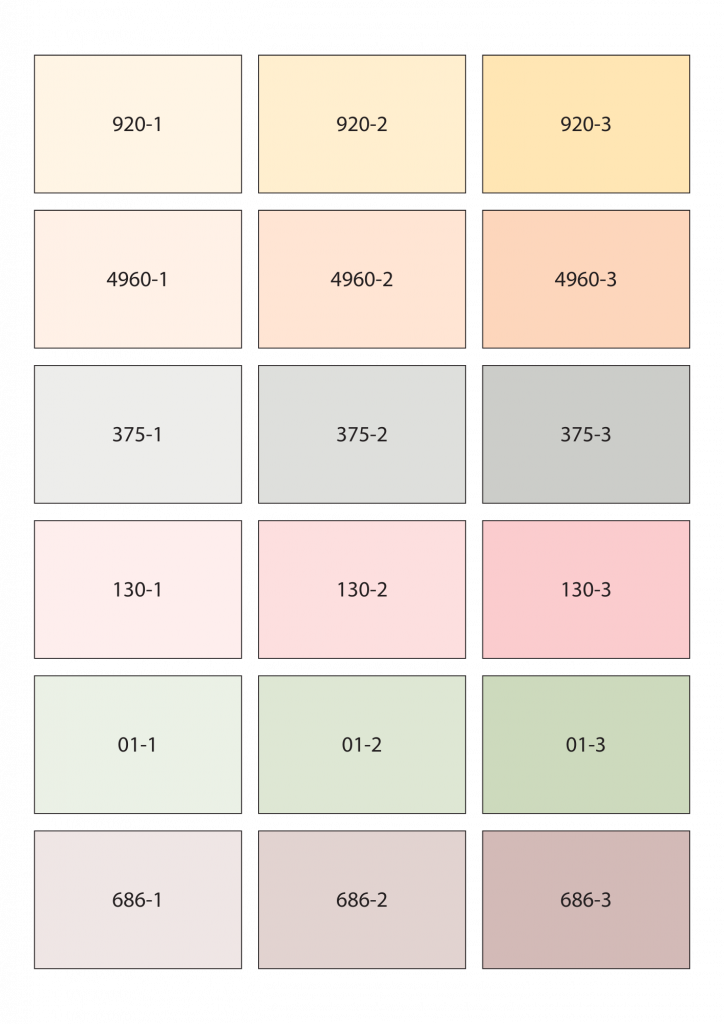 - Toņu karte pigmentiem paredzēta SAKRET dekoratīvajiem apmetumiem SBP un MRP-E;